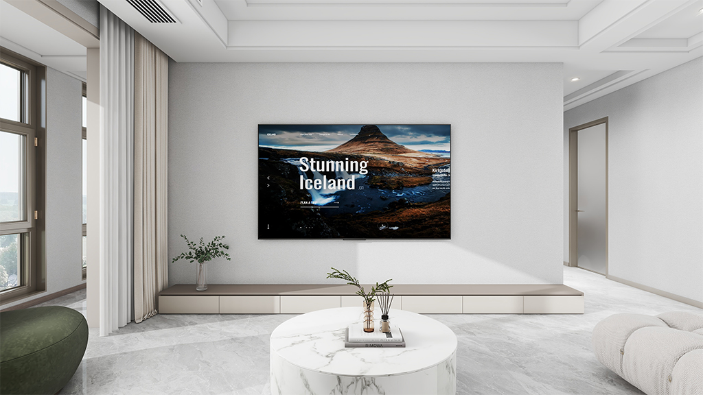 客厅采用了奶咖色的美陶石材料效果,配以浅灰色的简约家具,营造出一个开放、简洁的居住环境,让人身处其中,可以全身心放松,消除一天的疲劳感。