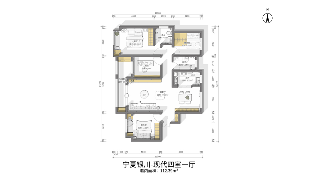 今天给大家带来的是:宁夏银川-现代四室一厅的案例分享,主要使用的是美陶石、珠光水漆和防潮固胶漆这三款材料的巧妙搭配,整体呈现出舒适、简约、大气的现代家居风格。