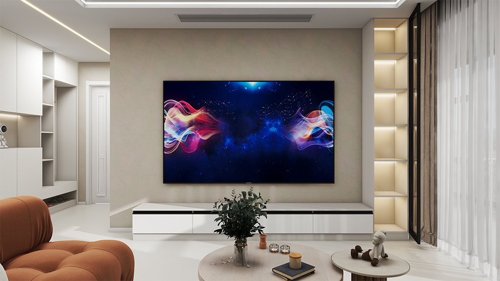 客厅电视墙做的是与沙发背景墙同色的微水泥材料效果,配以简单的家装布局,简约的家具,营造出一种清新、舒适的居家氛围。