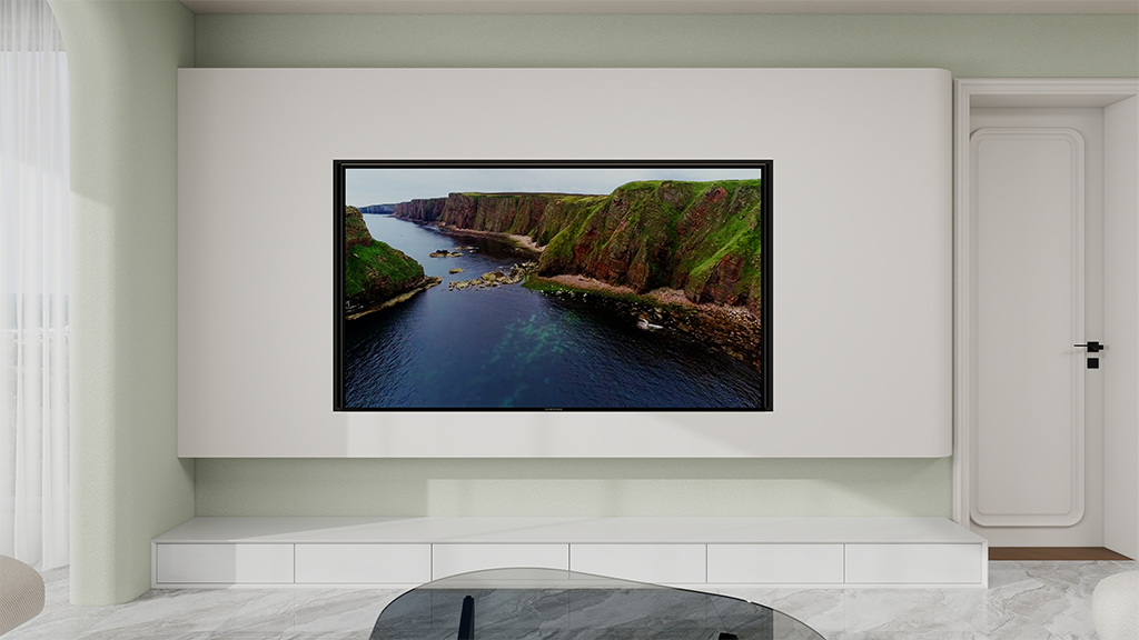 客厅电视墙做的是一个与沙发背景墙一样的蛋壳光材料效果,配以简单的家装布局,简约的家具,营造出一种清新、舒适的居家氛围。