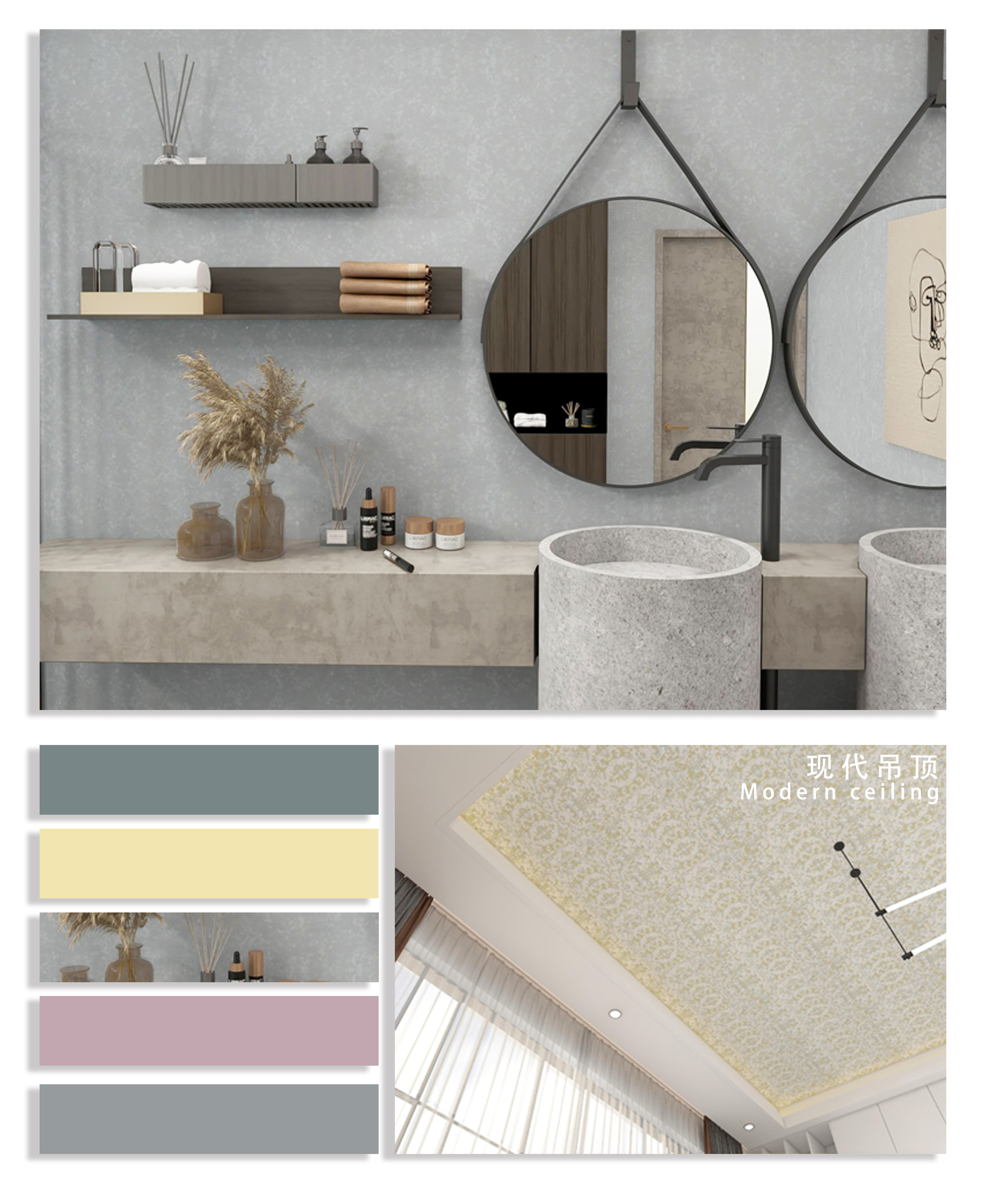三色幻彩营造出独特奢华而又内敛的个性,散发着淡雅的生活气息。适用于各类建筑物的室内装饰。