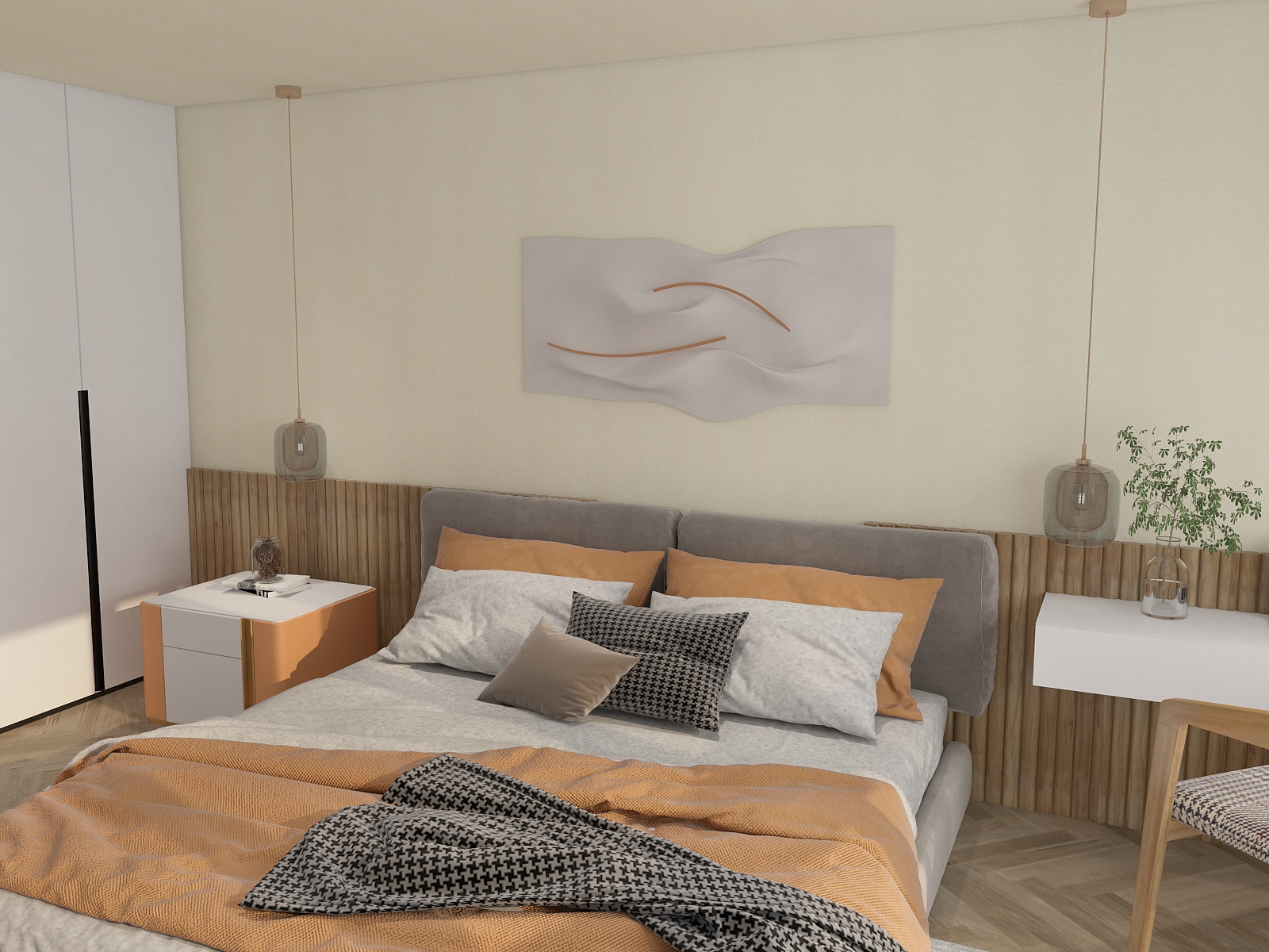 可可砂绒能准确掌握简约的真谛,淡雅纯色的搭配让房间焕然一新,瞬间的高级感让每个欣赏到的人都叹为观止。