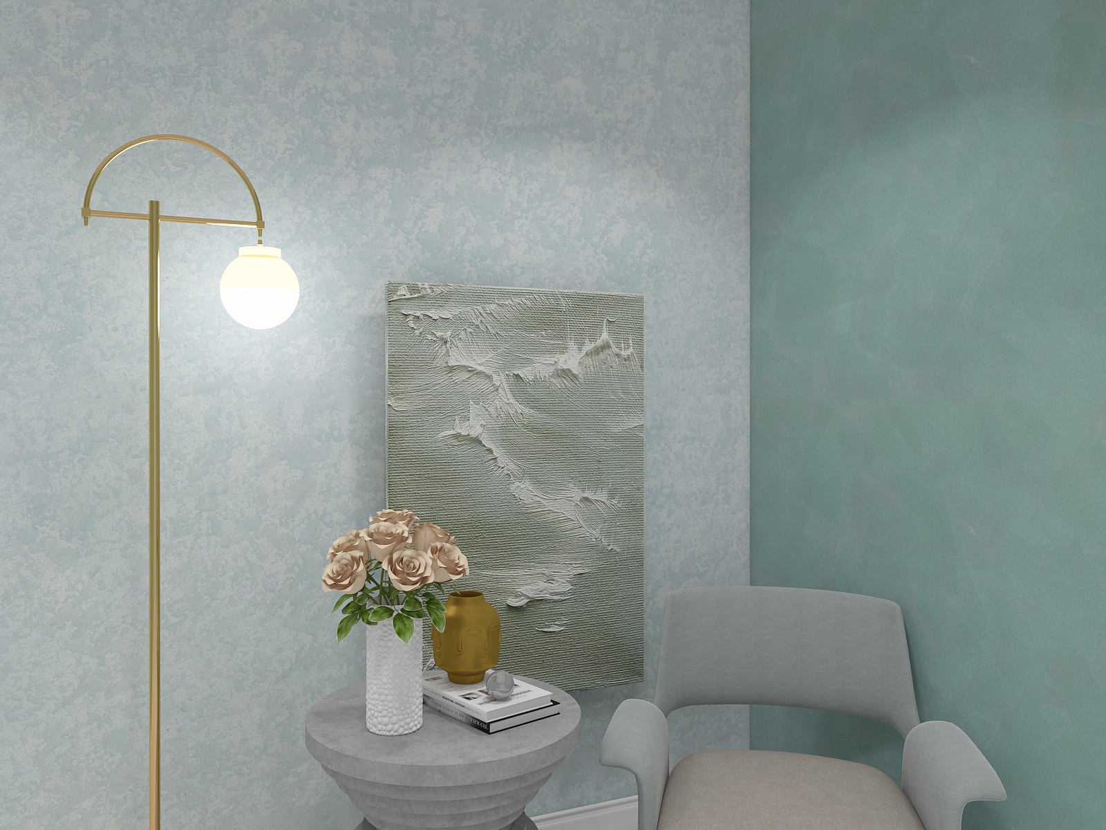施工工具:短毛滚筒、天然海藻拍或天然海藻滚筒、收光刀