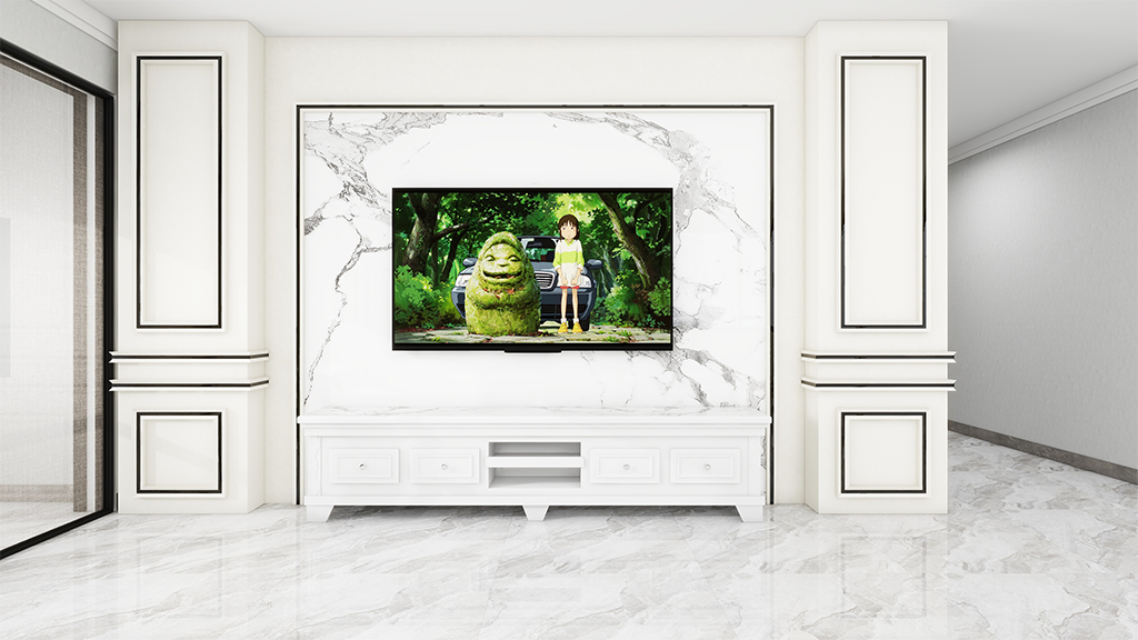 客厅电视墙仿大理石的马来漆材料效果,配以简约的家具,营造出了现代设计潮流的大气家居风格。