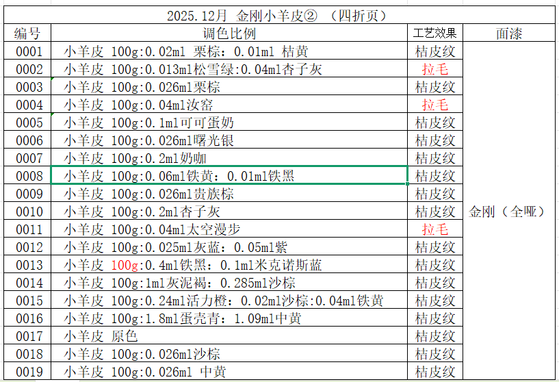 月石艺术涂料色卡色浆比例